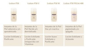 Las Lociones P50 son productos multifunción, que aúnan los beneficios de una loción purificante, exfoliante y tonificante permitiendo la reconstitución del escudo epidérmico. La epidermis, reforzada, ejerce plenamente sus funciones de protección y favorece su potencial autoregenerante. Cada una de las lociones P50 está adaptada a un tipo de piel y a una acción específica